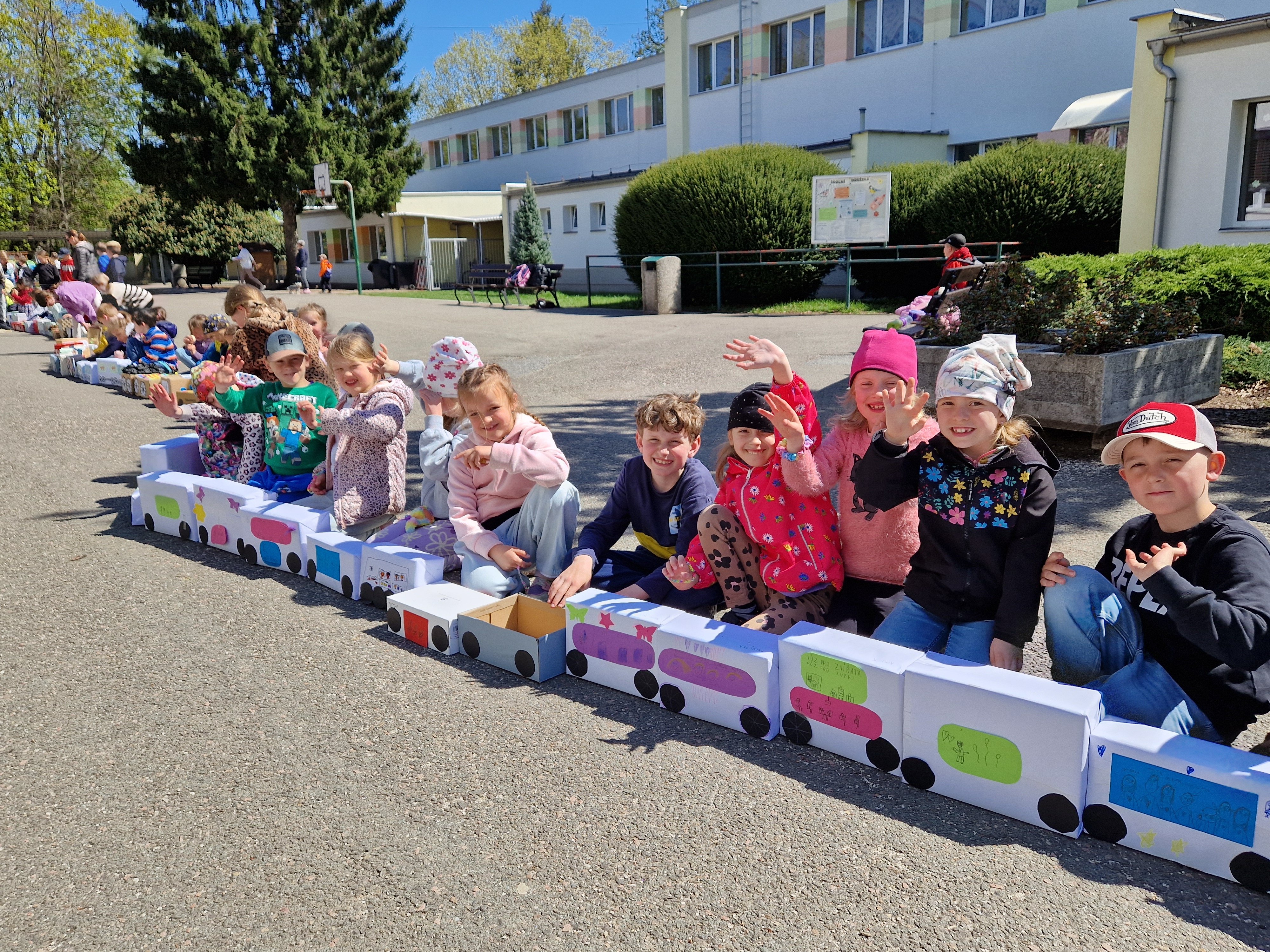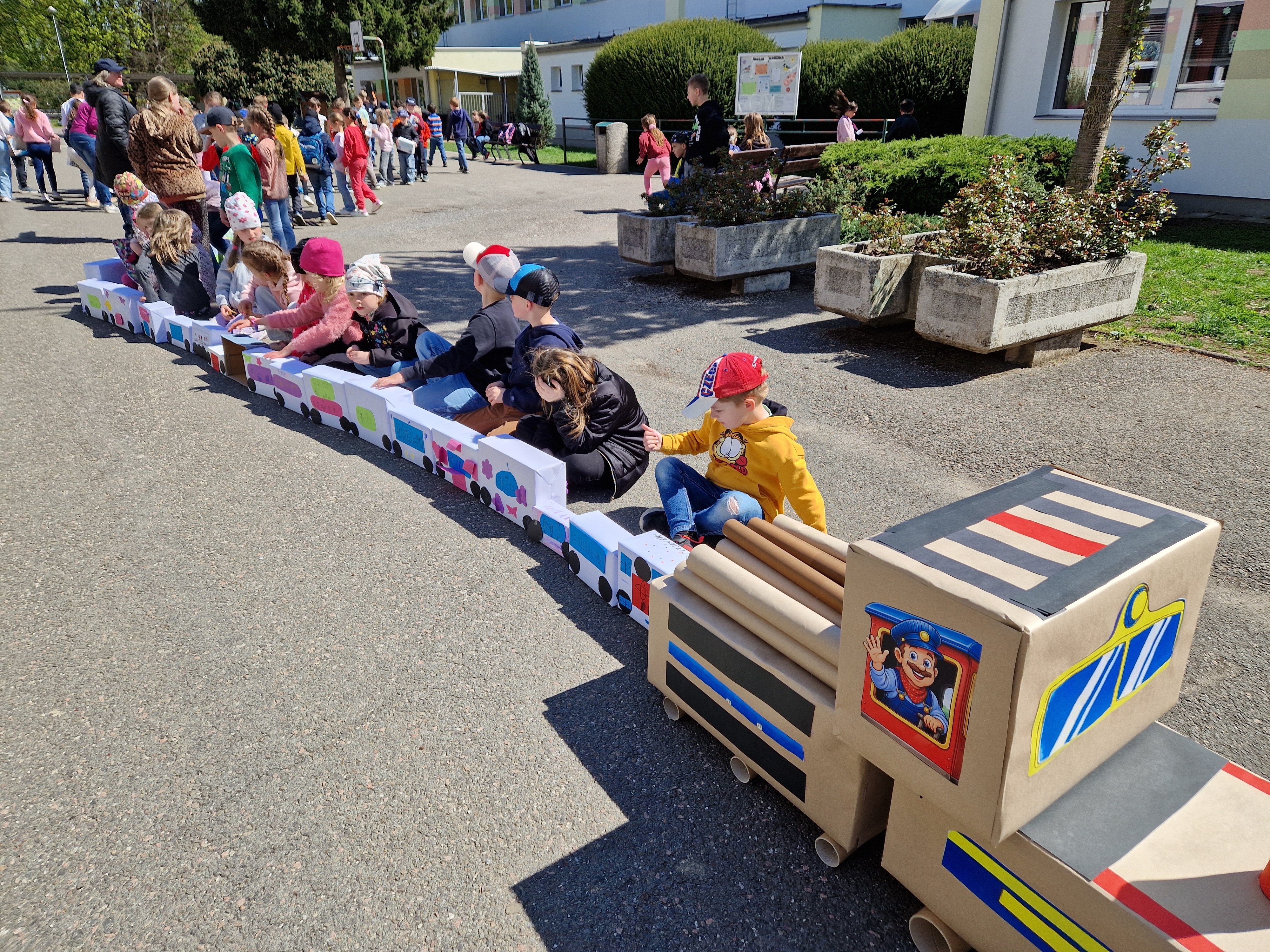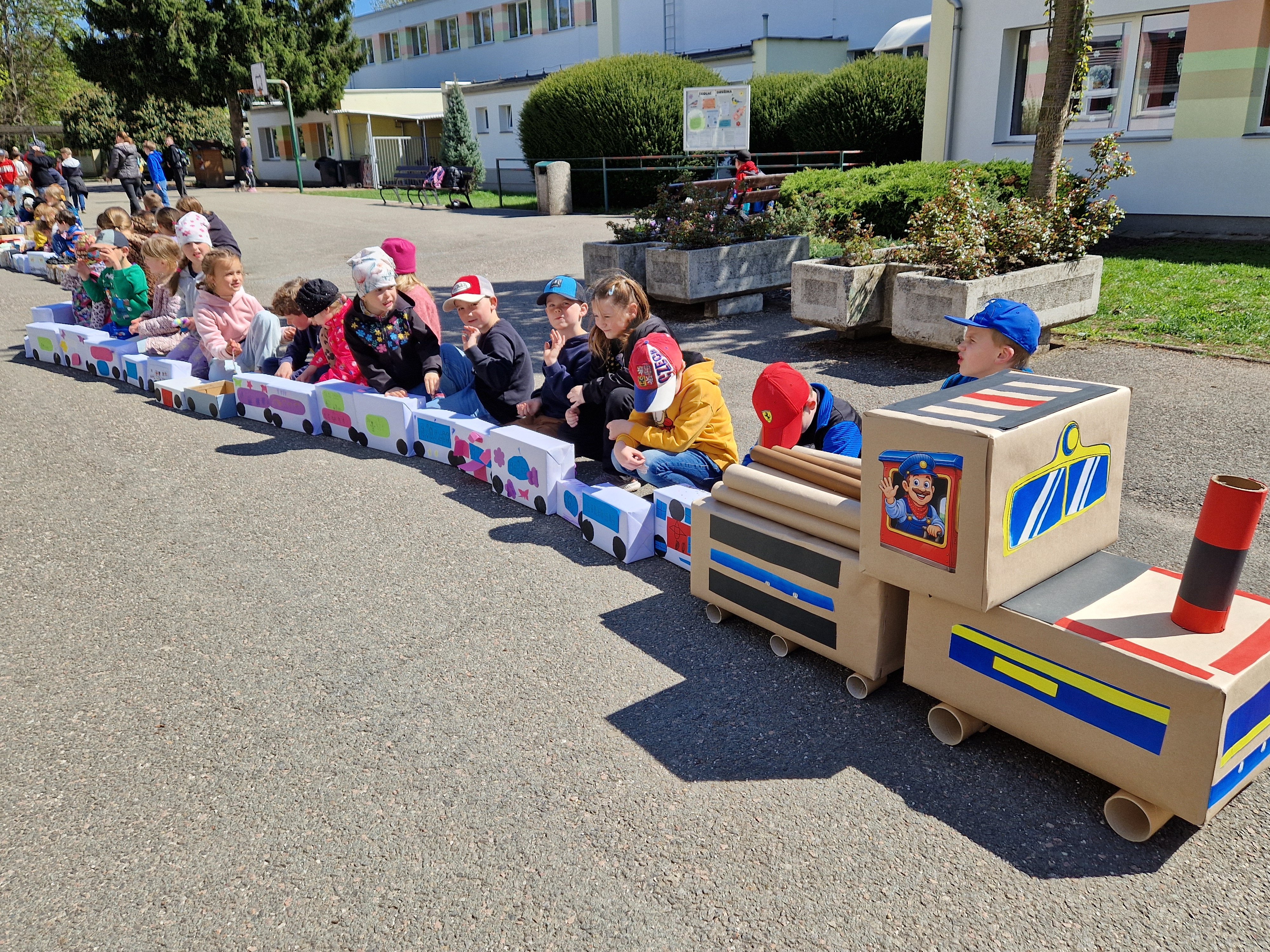 Den Země v ŠD - mašinka z odpadového materiálu - lokomotiva a dalších 146 vagónků.