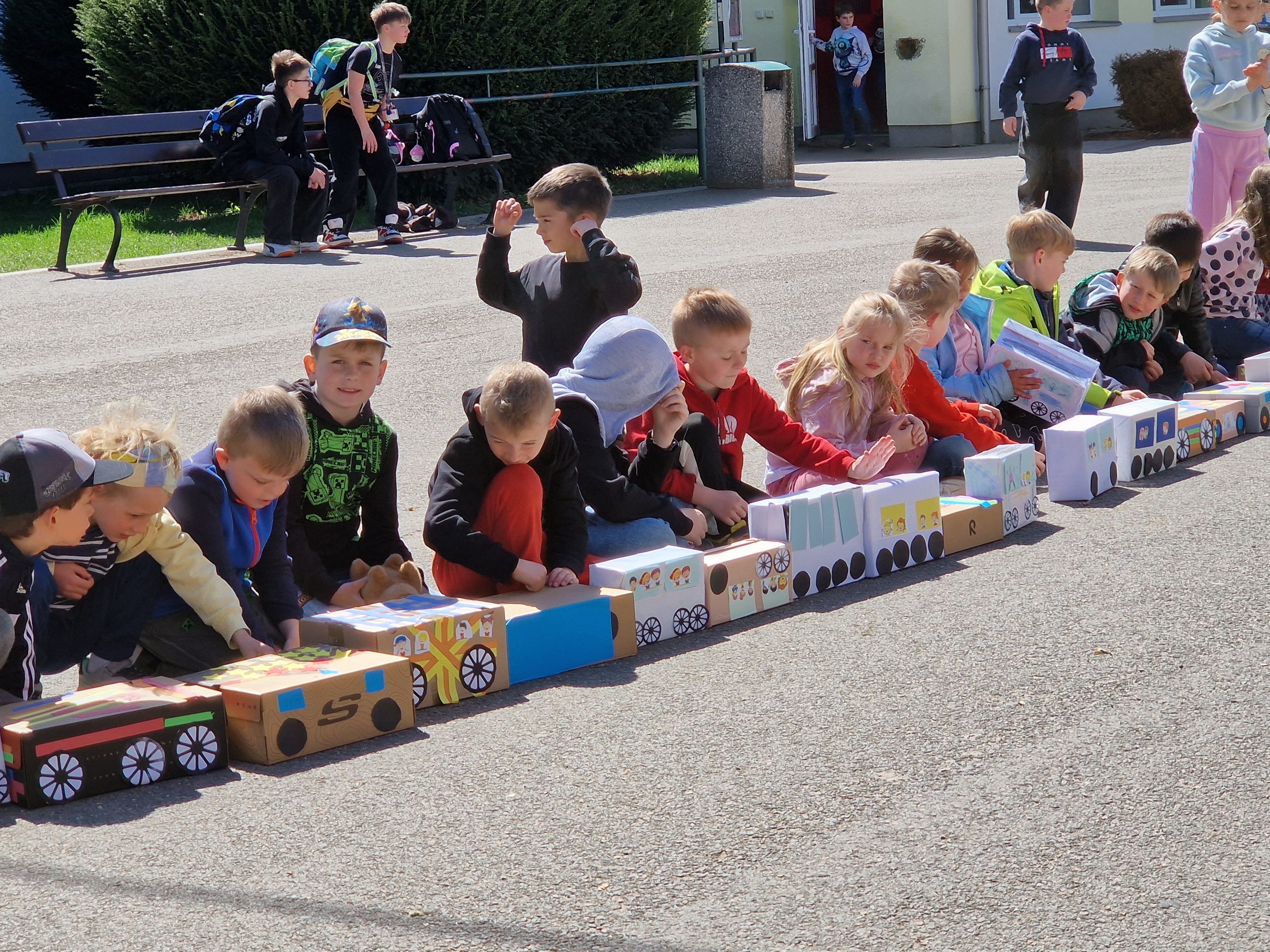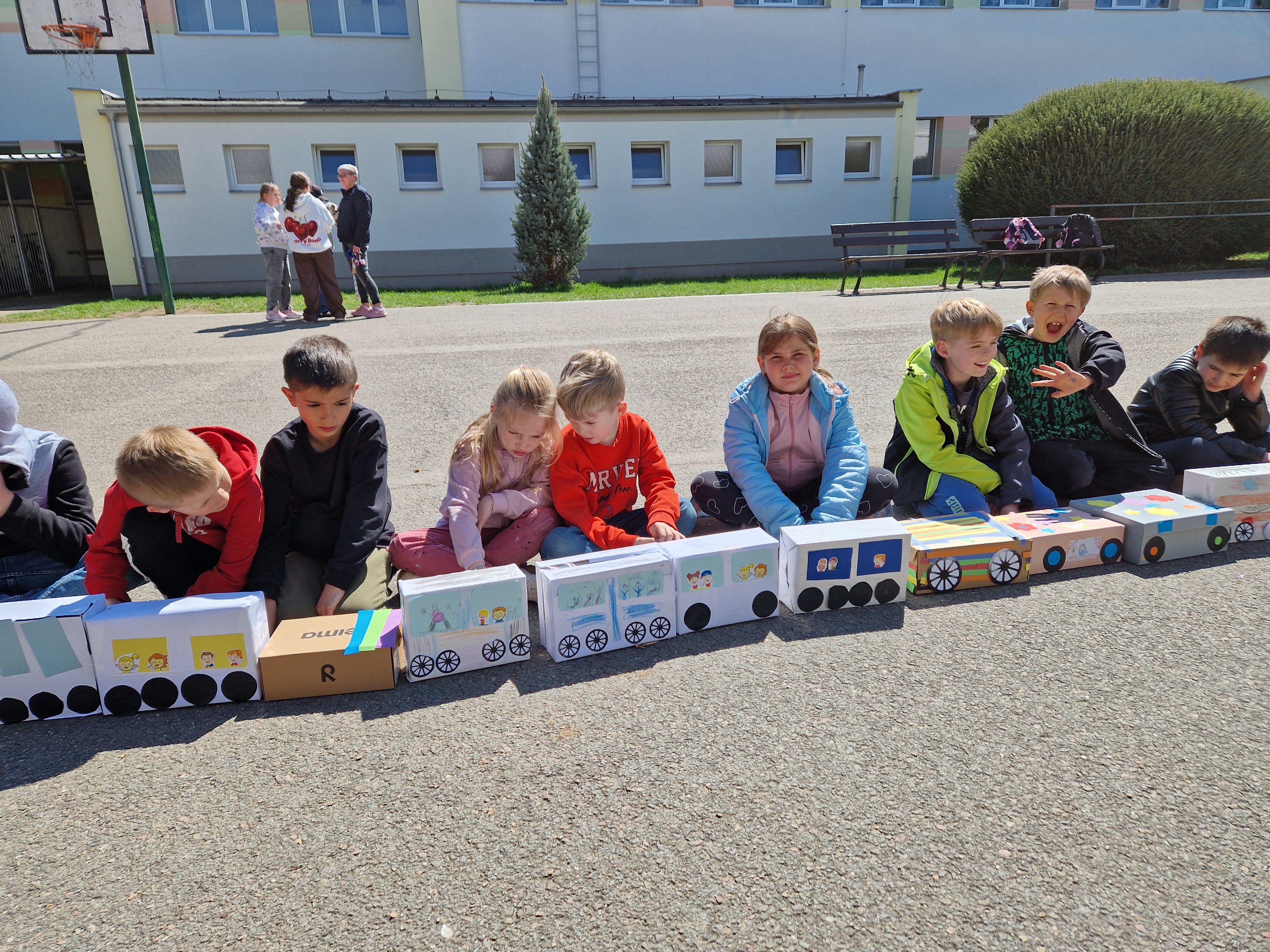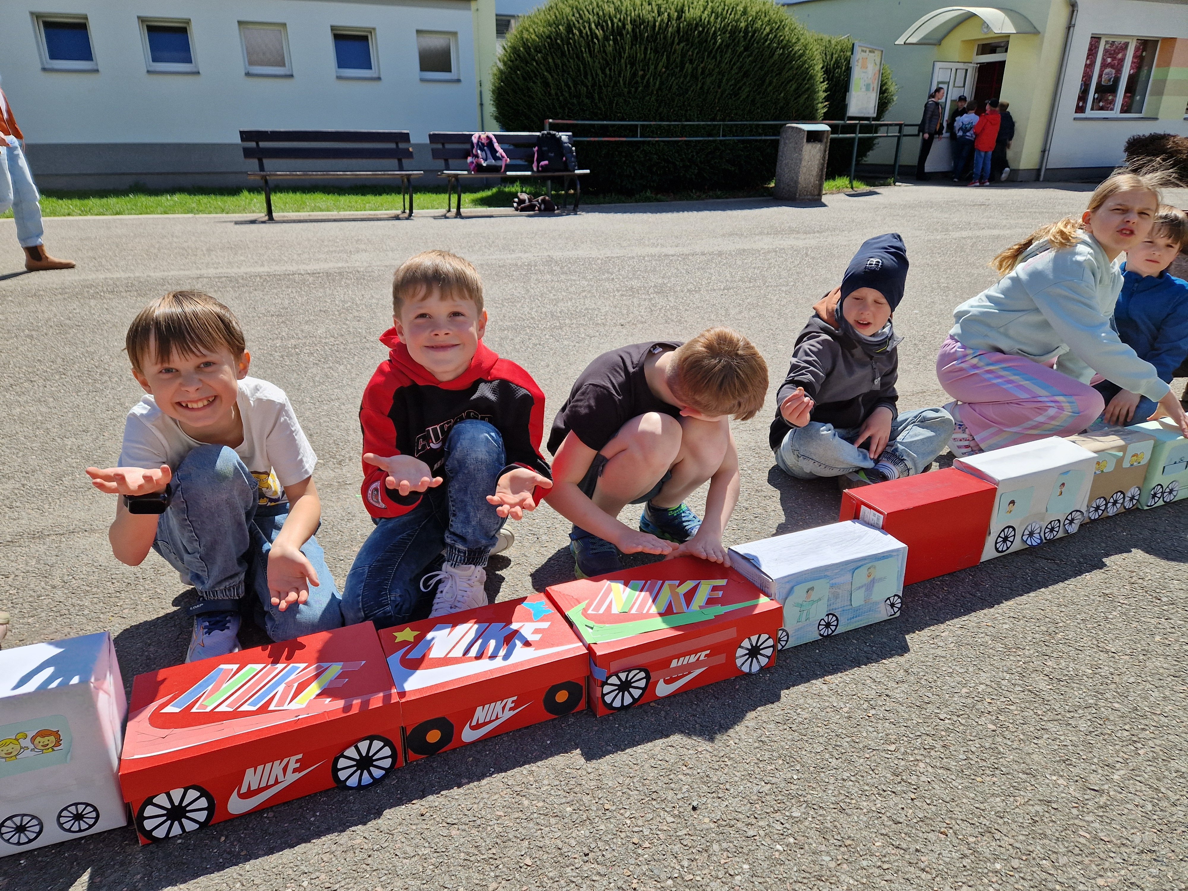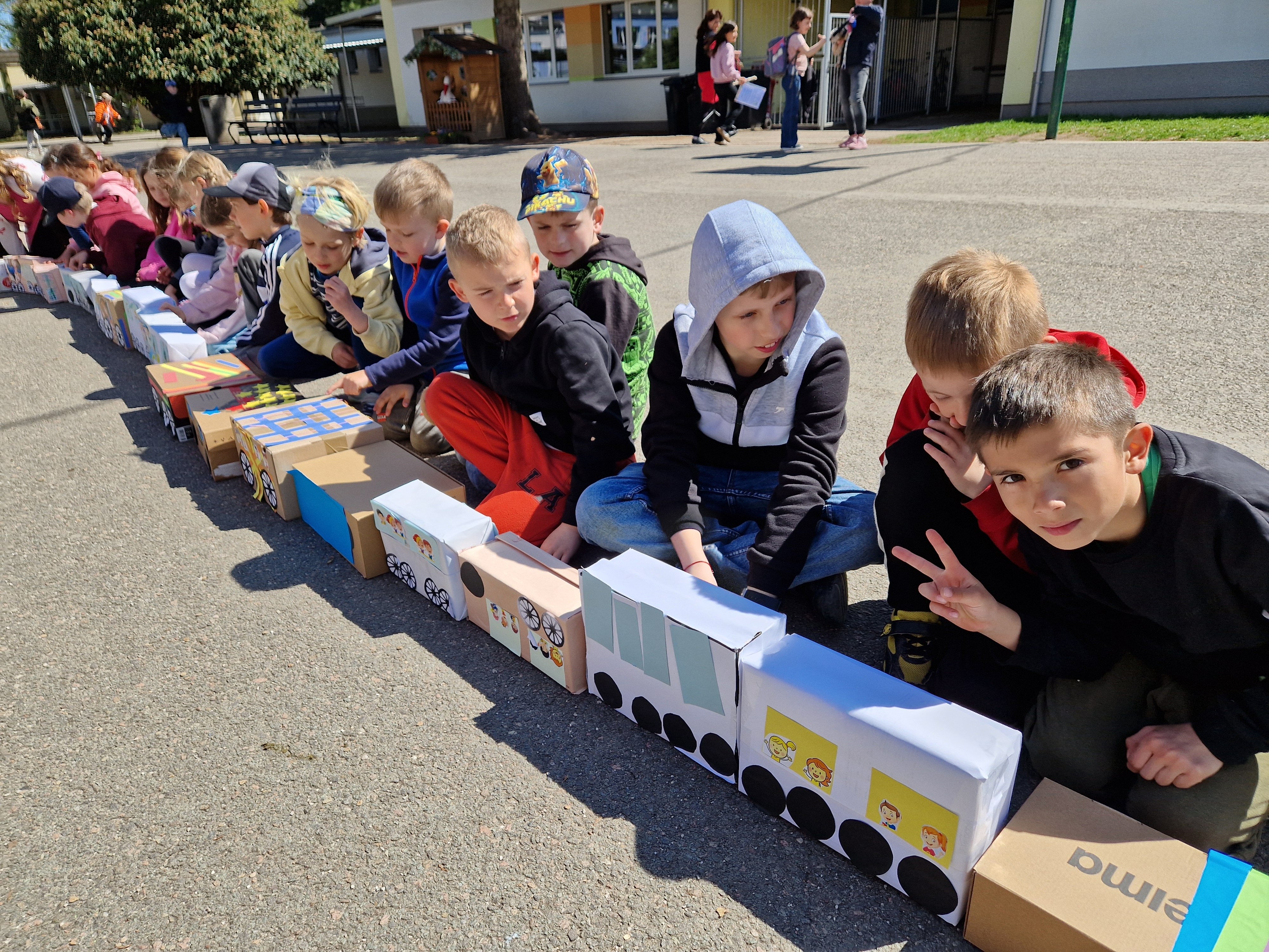 Den Země v ŠD - mašinka z odpadového materiálu - lokomotiva a dalších 146 vagónků.